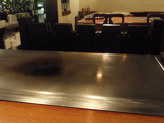 鉄板のついた客席が複数あって、個人毎に目の前で焼いてくれる