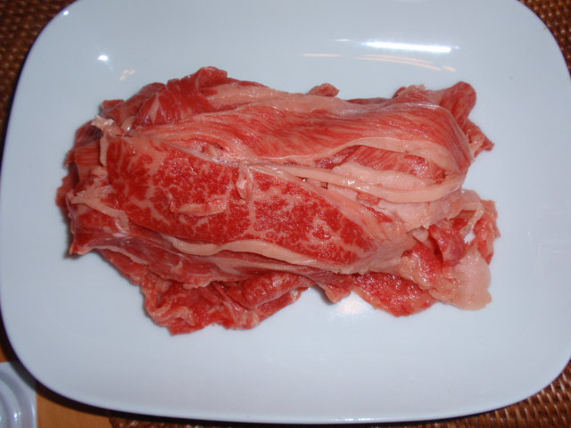 ③赤ワインで牛肉をしゃぶしゃぶして、薬味でをつけて頂きます。