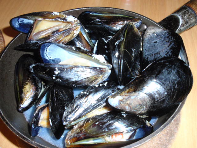 ③にんにくの香りが立ったらムール貝を入れて蓋をし、蒸し焼きに