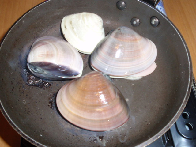 ①蛤を良く洗って焼き、醤油と酒で味付け。シンプル。