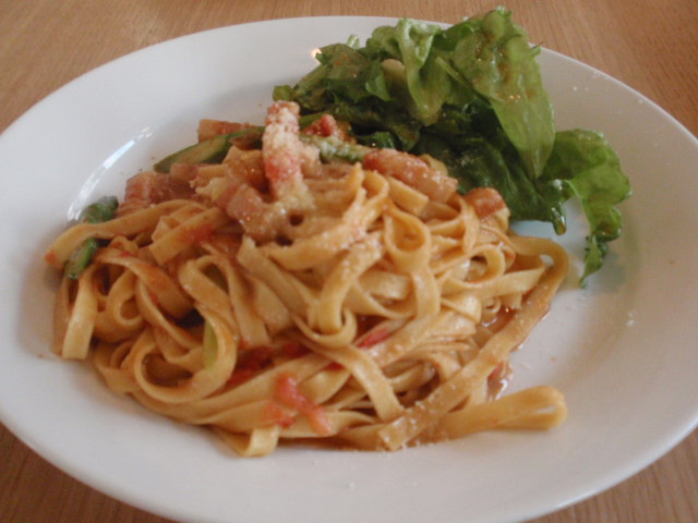 ④パスタは、1分短めに茹でて、③に投入しスープを吸わせる。