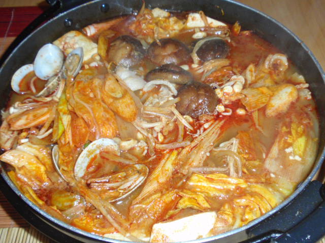 今日は、辛いのが食べたくって、チゲ鍋にしてみました。