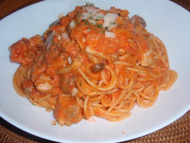 うーん、小腹が減ったのでトマトクリームパスタでも作ろう。