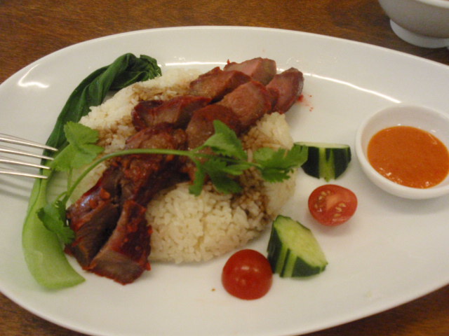 今日は、チキンライスじゃなくて、豚。ジャスミンライスうまい。