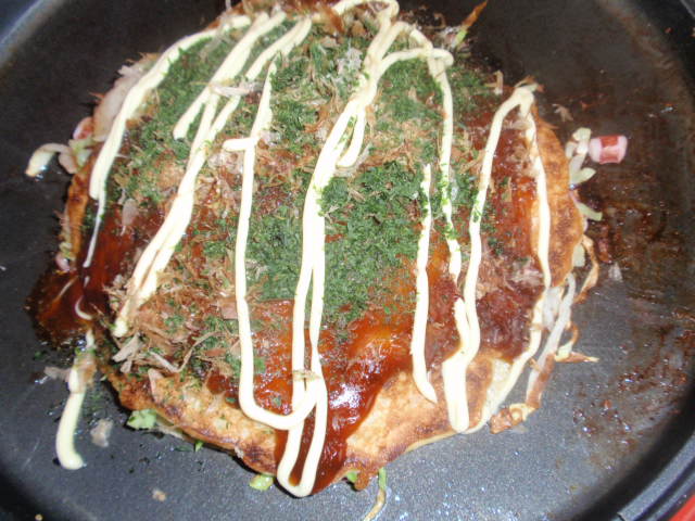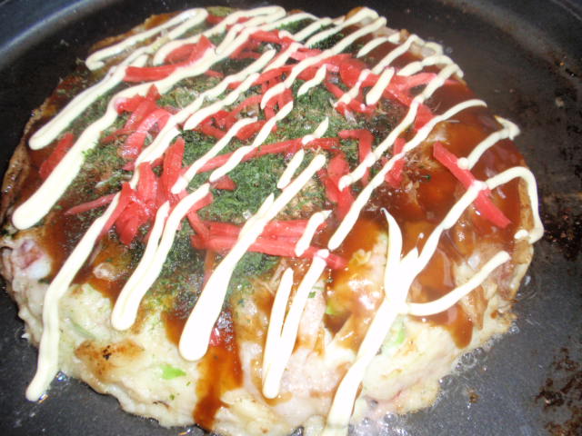 ①小麦粉1cupに卵と山芋、水50cc位、イカなど入れて良く混ぜる。